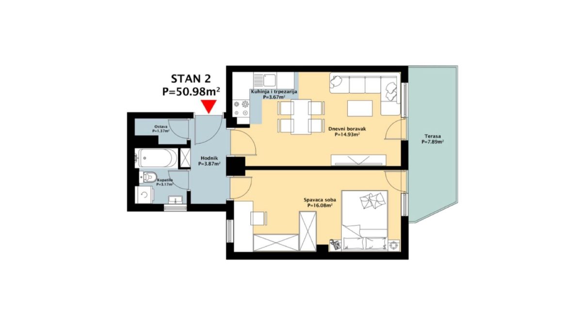 | Dnevni boravak | 14.93 m² |